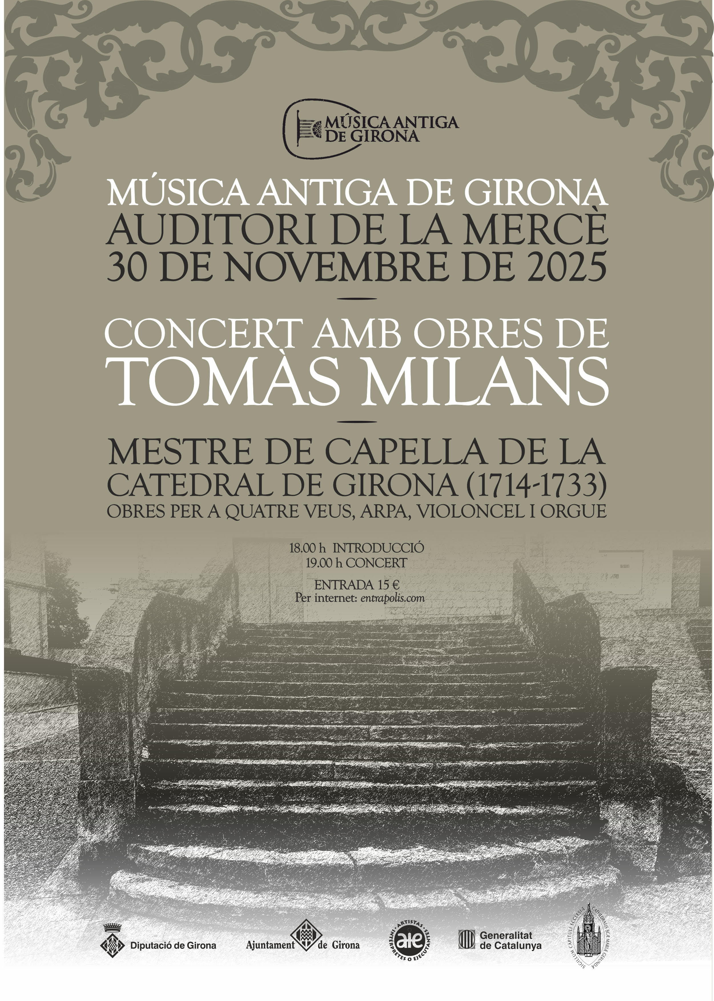 Auditori de la Mercè. Girona Diumenge 30 de novembre de 2025. A les 19 hores (7 de la tarda) Una hora abans hi haurà una explicació sobre les obres del